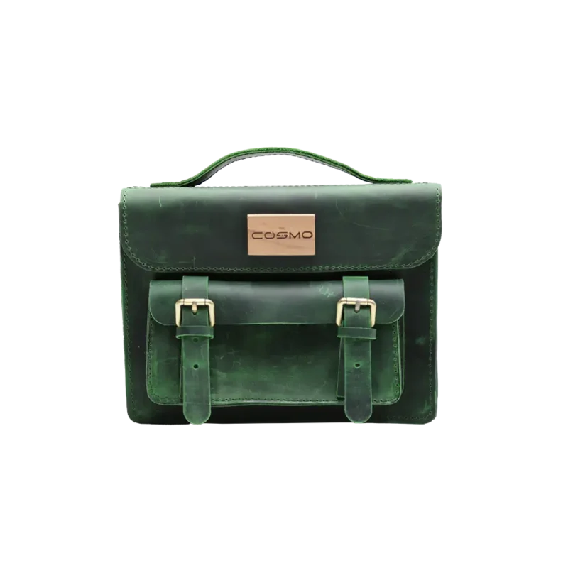 ზამშის და ხის კომბინაციით შექმნილი ჩანთა
