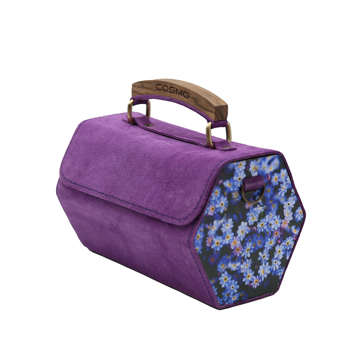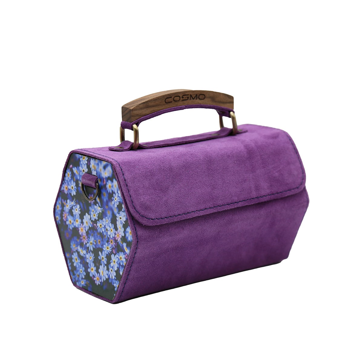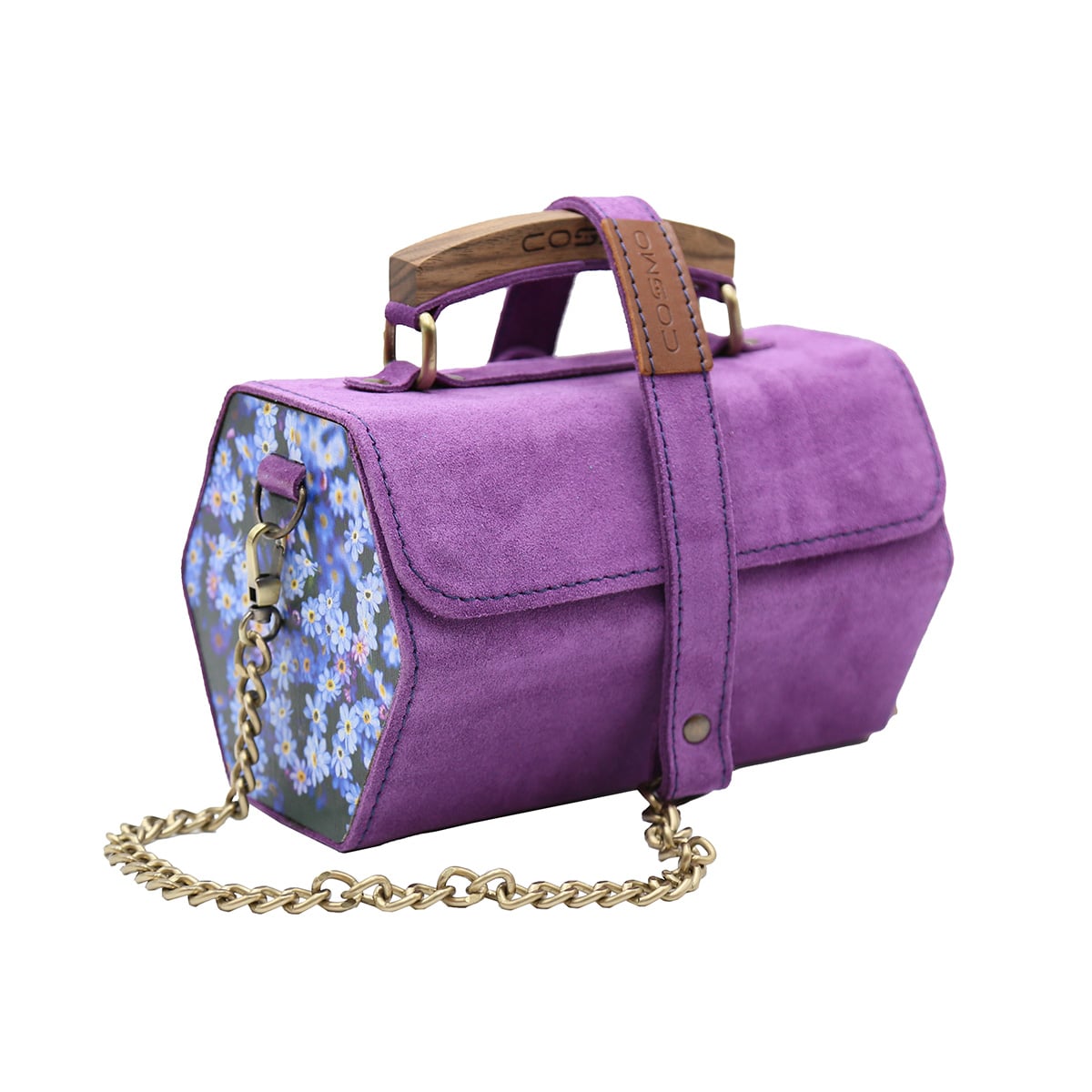 ნატურალური ზამშით და ხის კომბინაციით შექმნილი ჩანთა, რომელზეც დატანილია კესანეების პრინტი